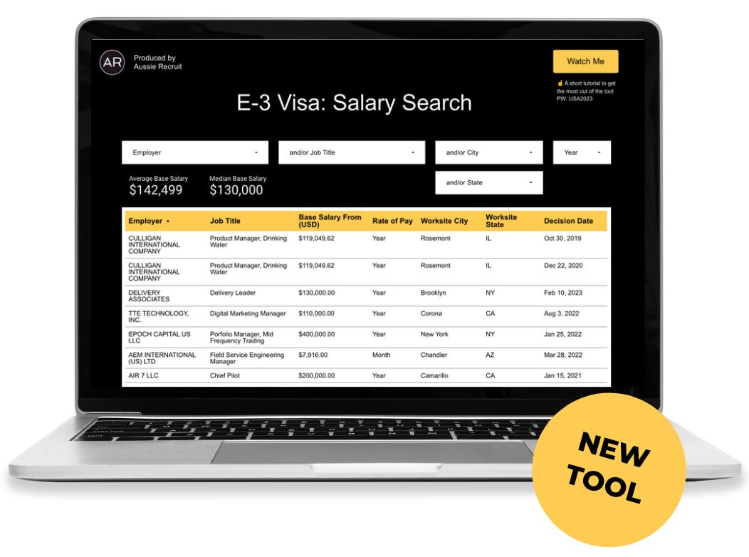 Search through 50,000+ E-3 visa salaries by company, job title, and US location. In a matter of seconds!